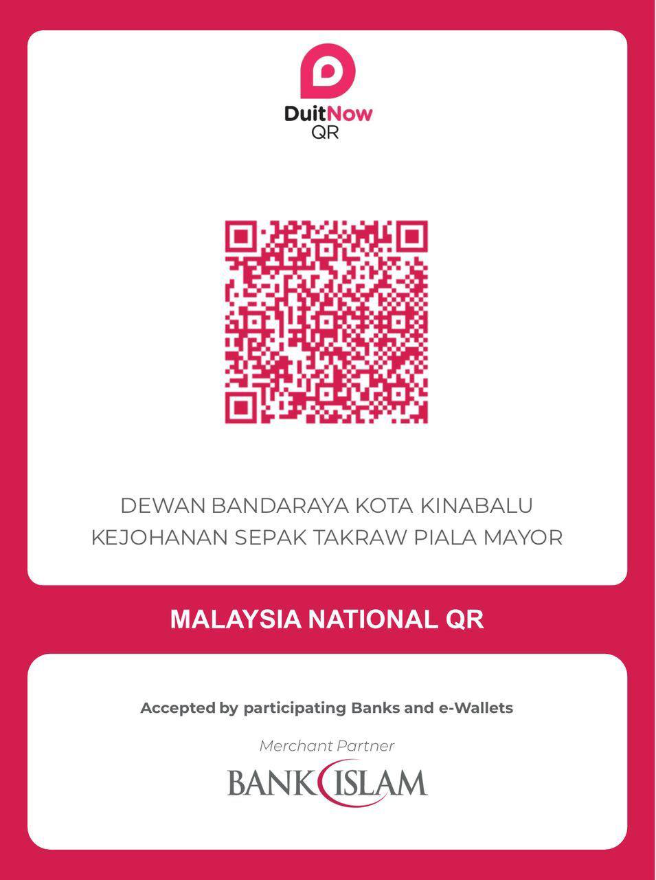 Bagi membuat pengesahan penyertaan, pemain boleh membuat bayaran melalui Kod QR yang disertakan atau melalui butiran berikut: