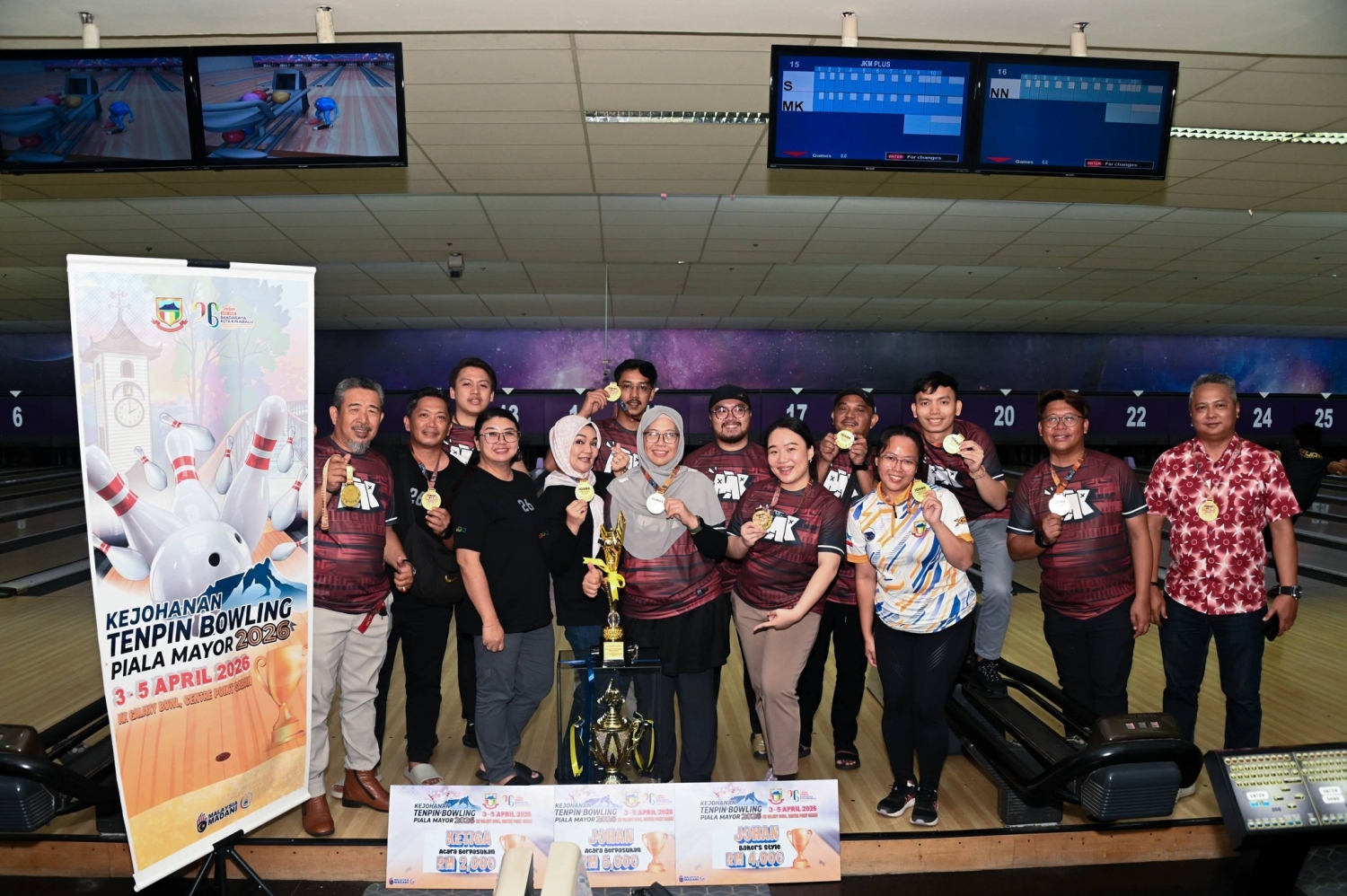 10 APRIL 2026: Kejohanan Tenpin Bowling Piala Mayor 2026 anjuran Kelab Boling Dewan Bandaraya Kota Kinabalu (DBKK) yang diadakan bersempena dengan Sambutan Ulang Tahun Ke-26 Bandaraya Kota Kinabalu telah berlangsung dengan jayanya di KK Galaxy Bowl, Centre Point Sabah, pada 03 hingga 05 April 2026.