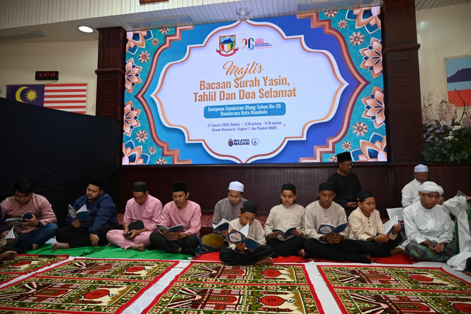 05 FEBRUARI 2026: Sebagai tanda kesyukuran bersempena Sambutan Ulang Tahun Ke-26 Bandaraya Kota Kinabalu, Dewan Bandaraya Kota Kinabalu (DBKK) telah mengadakan Majlis Bacaan Surah Yasin, Tahlil dan Doa Selamat bertempat di Dewan Mesyuarat, Ibu Pejabat DBKK, pada 31 Januari 2026.
